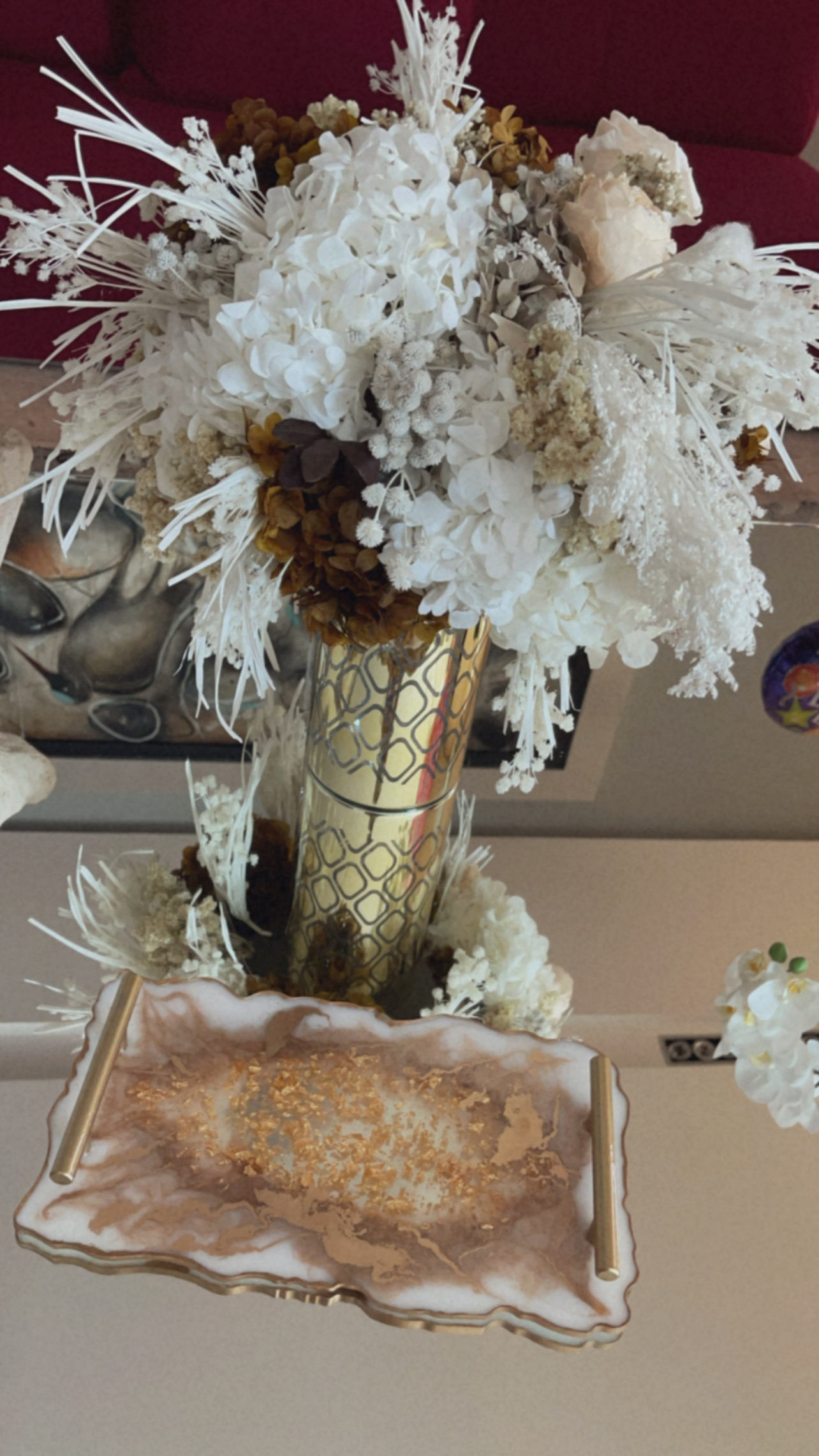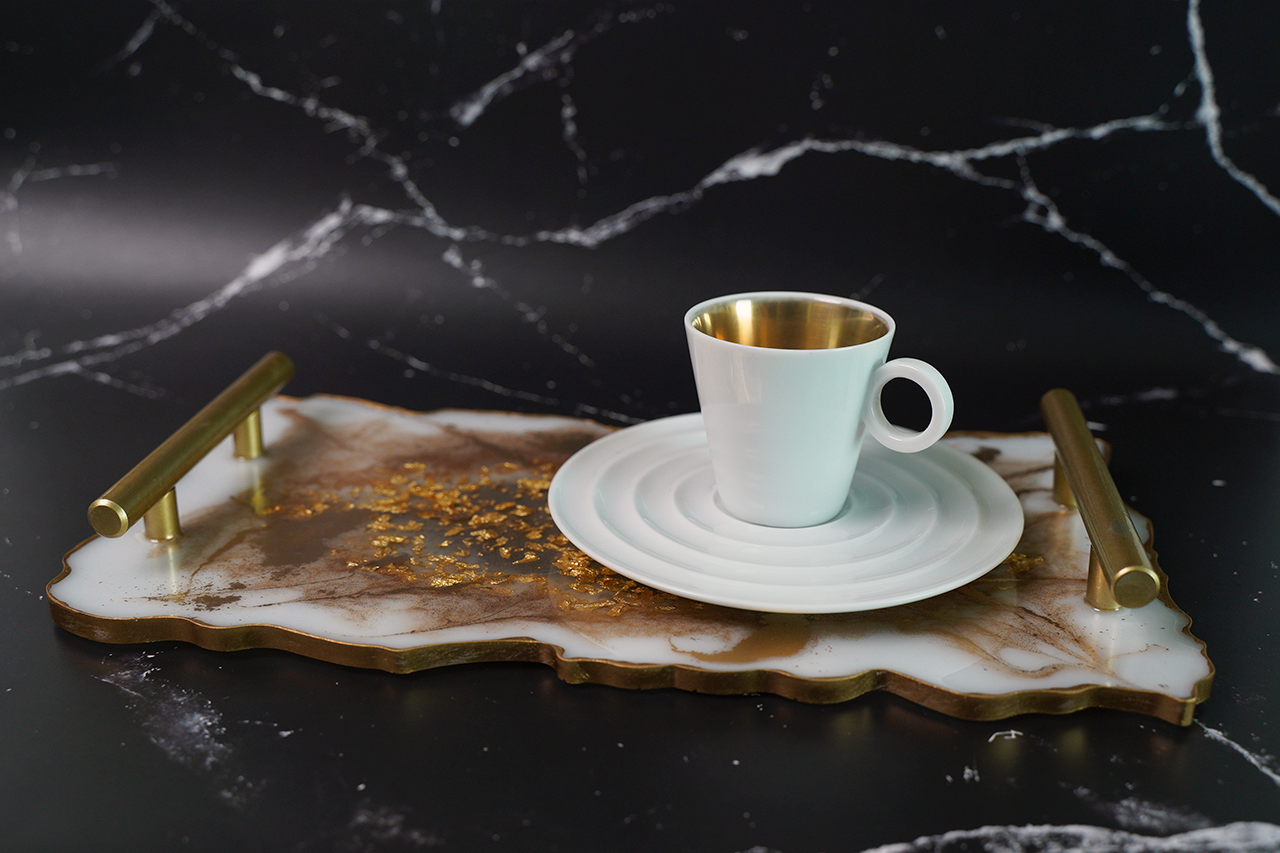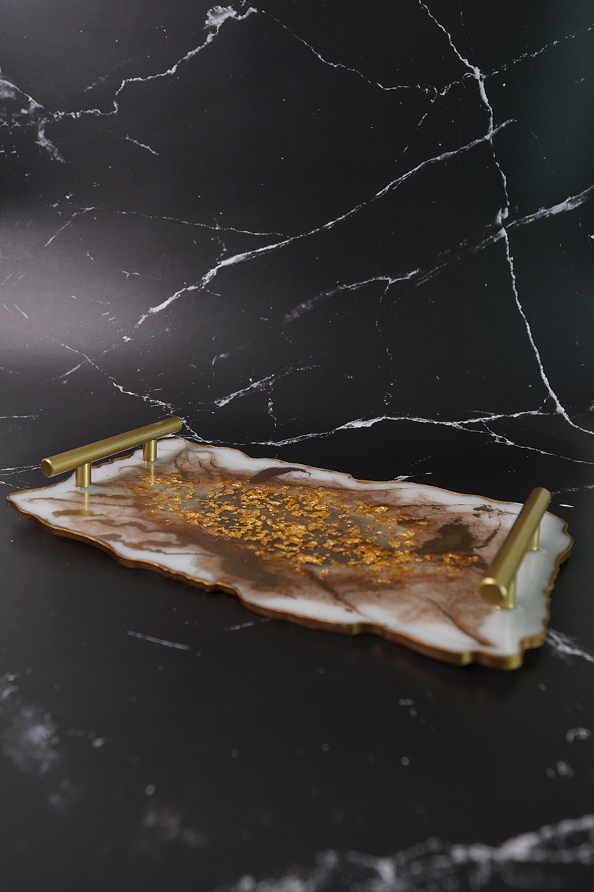 Charola Dorada decorativa de resina hecha a mano.